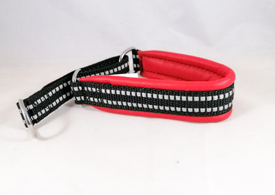 Puolikiristävä nahalla pehmustettu heijastinpanta. Leveys n. 3 cm. Sisämitta kireimmillään 26 cm. Pehmusteen väri punainen. Kiristävä osa heijastinnylonnauhaa.