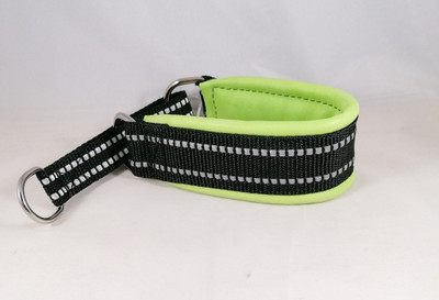 Puolikiristävä nahalla pehmustettu heijastinpanta. Leveys n. 4 cm. Sisämitta kireimmillään 27 cm. Pehmusteen väri limenvihreä. Kiristävä osa heijastinnylonnauhaa.